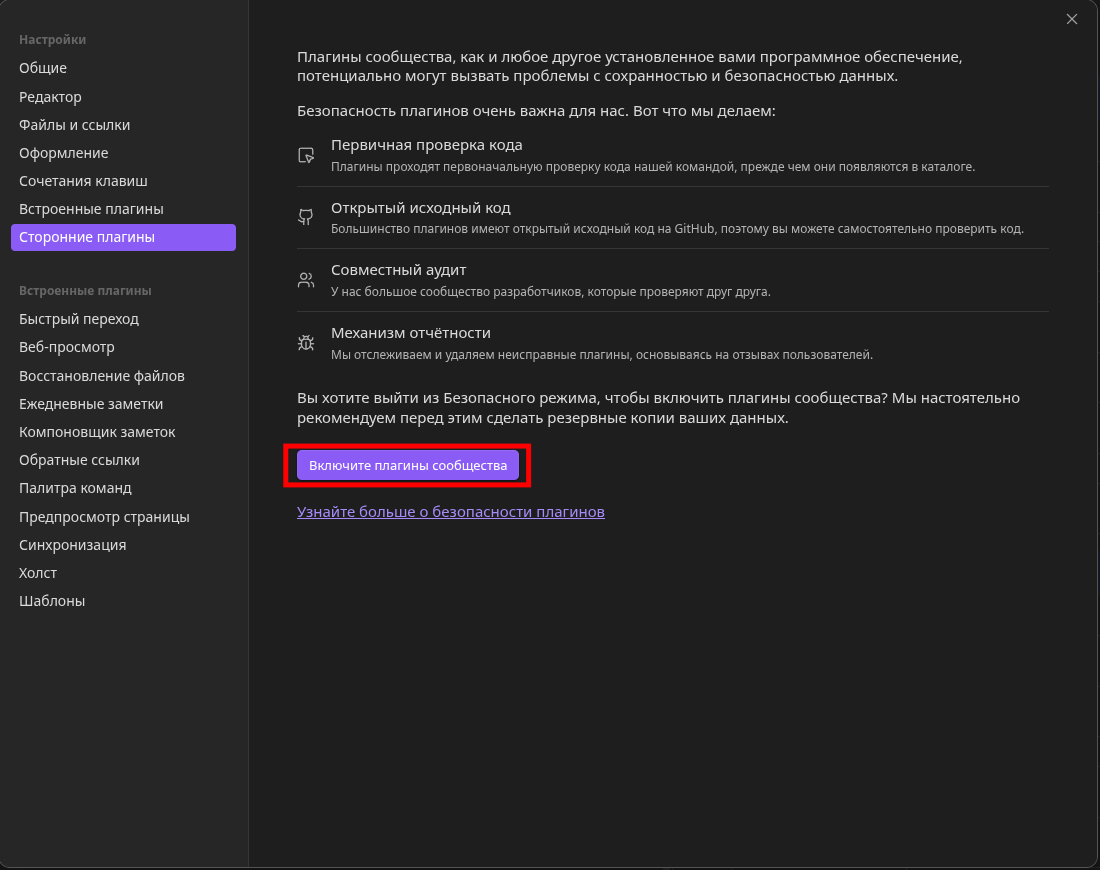 - Заходим во вкладку с плагинами и включаем «Плагины сообщества».