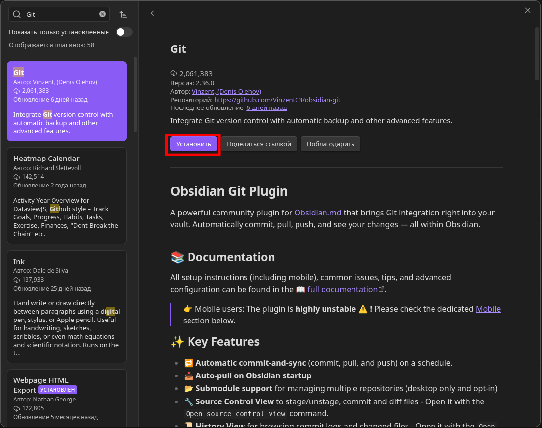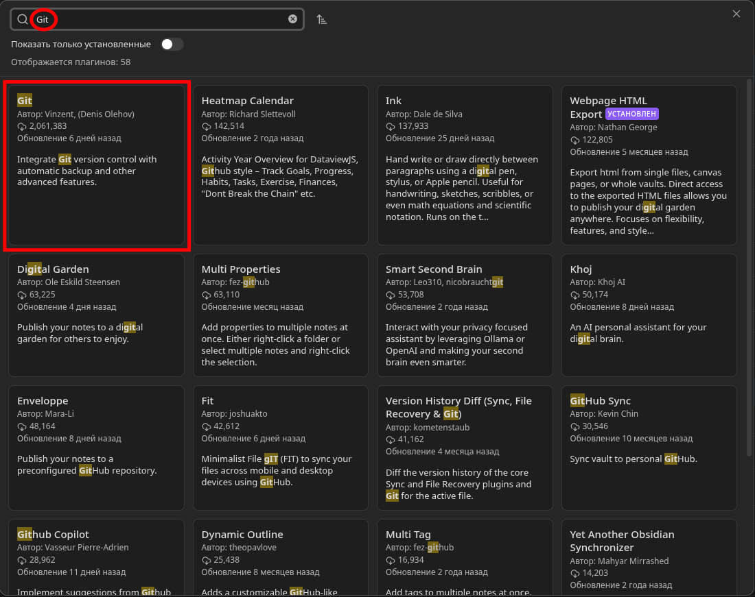 - Вы скачиваете необходимые программы: Git (все настройки можно оставить по умолчанию) и Obsidian.