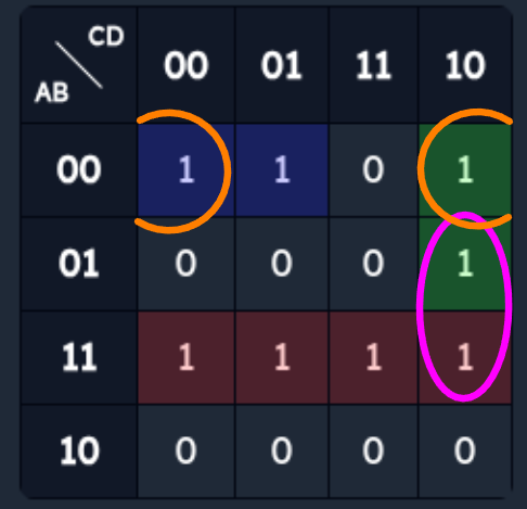 8. Отметить МДНФ на карте Карно
