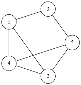 graph G { layout=circo; node [shape=circle]; a -- b; b -- c; c -- d; d -- e; e -- a; a -- c; b -- d; c -- e; d -- a; e -- b;}