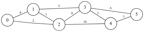 2.2. Найти кратчайший путь от вершины 0 до вершины 5 (Алгоритм Дейкстры).