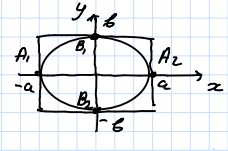 Эллипс симметричен относительно осей , и начала координат.