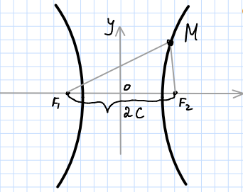 Рассмотрим на плоскости гиперболу с фокусами и в прямоугольной системе координат. Фокусы лежат на оси абсцисс. Центр гиперболы в начале координат. Такая система координат называется канонической.