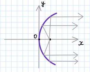 Если источник света поместить в фокус, то все лучи после отражения от параболы будут параллельны её оси.